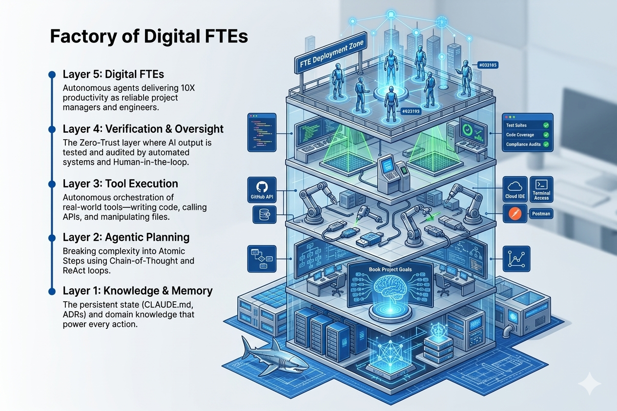A Digital FTE is not just a model with a prompt. It is a system. It combines domain expertise, explicit specifications, engineering architecture, and human oversight so that work can be performed consistently, auditable, and at scale.
